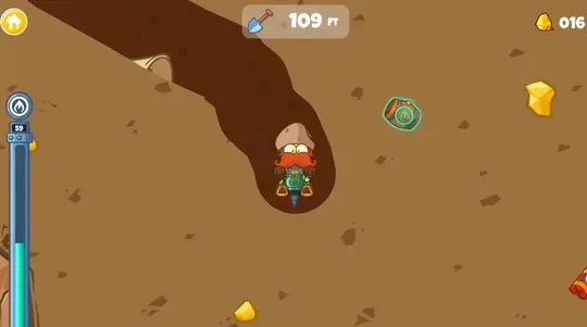 Click and drag to draw a path. When you release, Diggy will drill along that path and grab any gold, gems, and power-ups along the way. Drill into dynamite to set off an explosion, or into barrels to get more fuel for your drill. When you run out of fuel, you'll tally up your earnings and get a chance to buy upgrades for your gear.